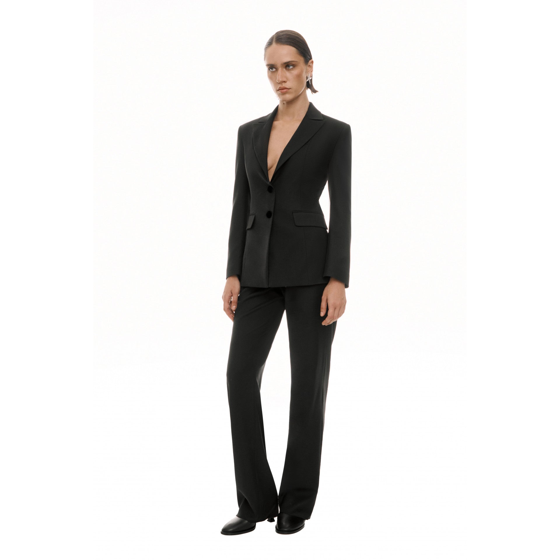 Jacket from new collection by LNB STUDIO. Slim-fitting, single breasted silhouette along with the main feature – decorative leather band weaving on back, somewhat resembling human spine. Designed and made by hand in our Tbilisi workshop.